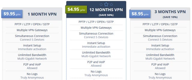 您可以选择每月 10 美元的 1 Mbps 速度上限帐户或每月 20 美元的无上限计划。您已被完全加密和隐藏。